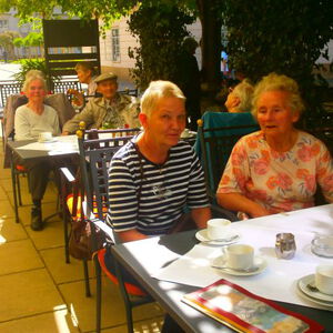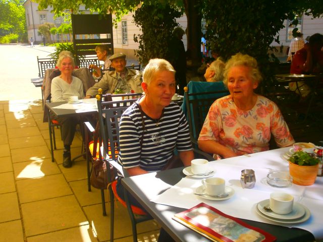 Bei der Überraschungsfahrt in den Frühling genießen wir die Aussicht und machen eine Rast im schönen Schlossgarten Pillnitz, wo wir auch gemütlich Kaffee trinken.