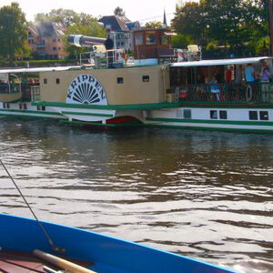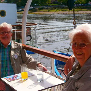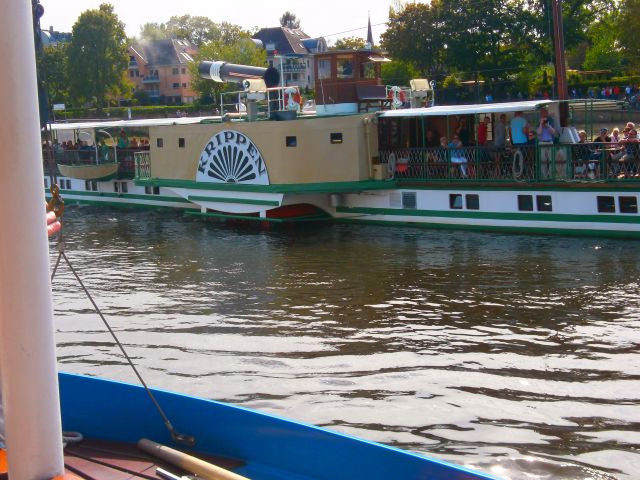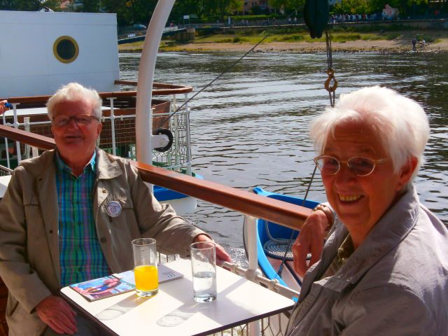 Wir genießen das schöne Wetter mit einer Fahrt auf der Elbe.